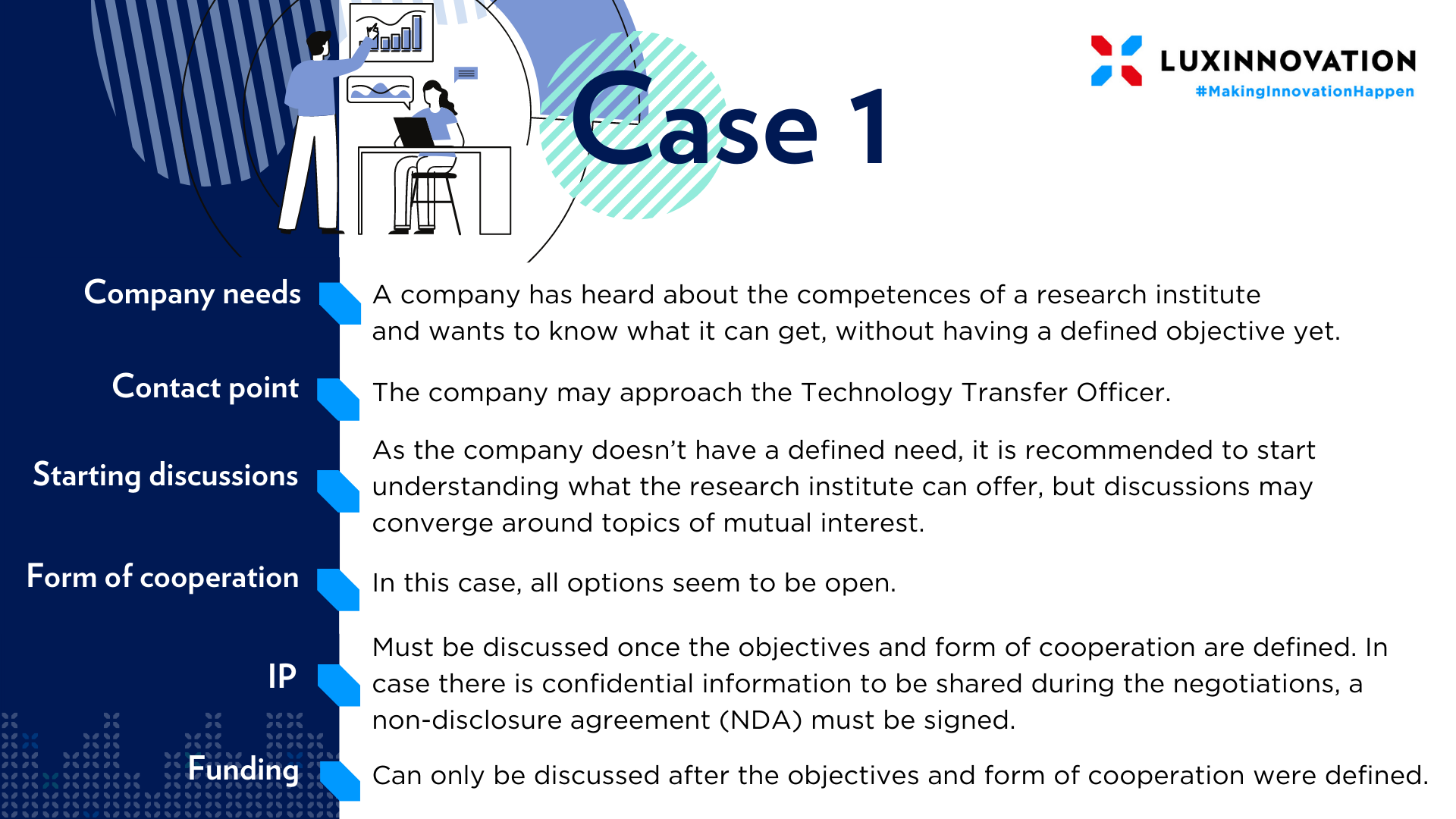 A company has heard about the competences of a research institute and would like to know what opportunities are available, without having a defined objective at this stage.